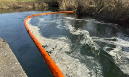 Lorze mit Heizöl verschmutzt + Ufer-Bereich meiden + Feuerwehr Obfelden errichtet Öl-Sperre