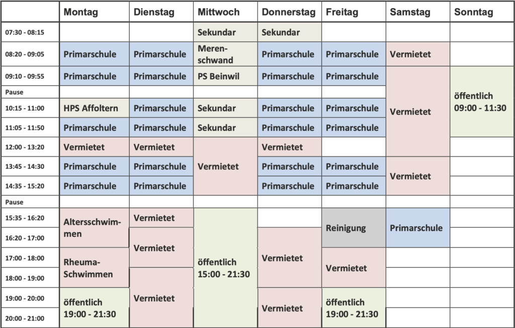 Belegung Hallenbad Schlossächer. Quelle: Gemeinde Obfelden