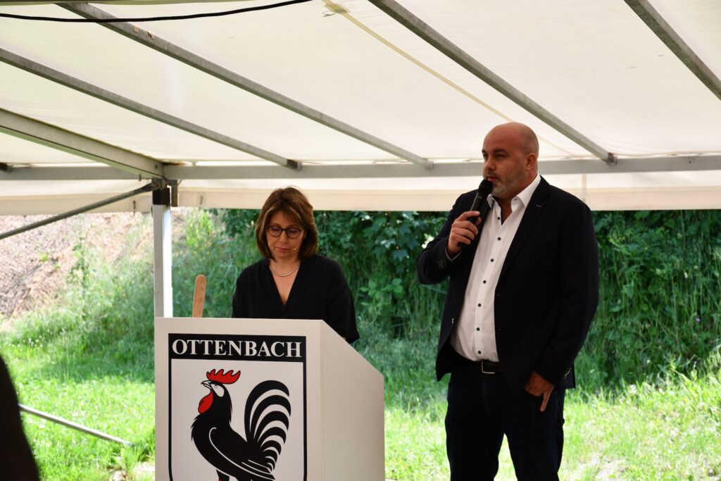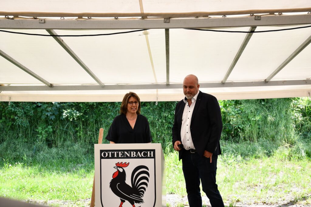 Die Ottenbacher Gemeindepräsidentin Gabriela Noser Fanger und unser Gemeindepräsident Stephan Hinners hielten ihre Rede gemeinsam. Zuvor erhielt die Ottenbacher Präsidentin von Martin Neukom einen Spaten weitergereicht. Dieser wurde 2017 als Symbol der IG Sicherer Schulweg an den damals verantwortlichen Regierungsrat Markus Kägi abgegeben, dass es vorwärts gehen soll. Gemäss Neukom fristete der Spaten bisher in seinem Büro sein dasein und soll jetzt ein Zeichen sein, dass die Gemeinden jetzt mit Bauen an der Reihe sind.