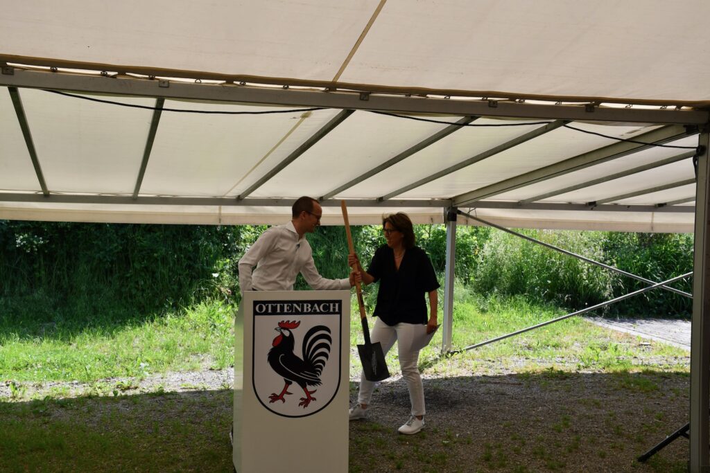 Die Ottenbacher Gemeindepräsidentin Gabriela Noser Fanger und unser Gemeindepräsident Stephan Hinners hielten ihre Rede gemeinsam. Zuvor erhielt die Ottenbacher Präsidentin von Martin Neukom einen Spaten weitergereicht. Dieser wurde 2017 als Symbol der IG Sicherer Schulweg an den damals verantwortlichen Regierungsrat Markus Kägi abgegeben, dass es vorwärts gehen soll. Gemäss Neukom fristete der Spaten bisher in seinem Büro sein dasein und soll jetzt ein Zeichen sein, dass die Gemeinden jetzt mit Bauen an der Reihe sind.