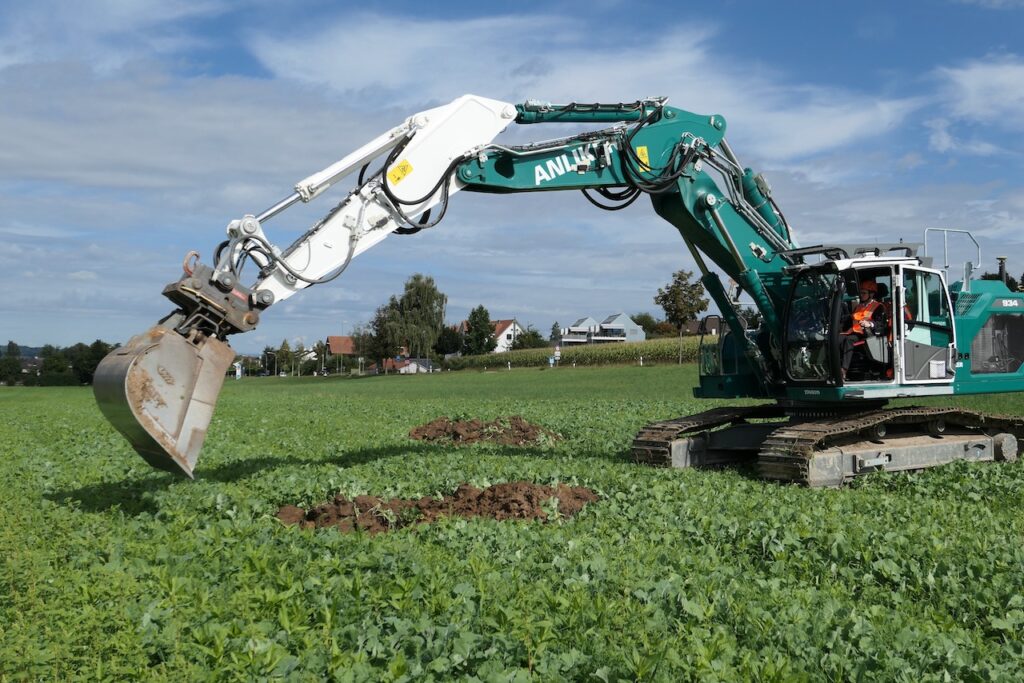 Kurz nach 10.30 Uhr galt es ernst. Der ehemaliger Baudirektor Markus Kägi wollte mit dem Spaten beginnen, doch Regierungsrat Martin Neukom setzte sich gleich selbst in den Bagger und erklärte, dass man heute so einen Spatenstich mache. Er liess es sich dann nicht nehmen während einigen Minuten ein Loch auszuheben. Im Anschluss wurde vor dem Bagger für die Medien posiert.