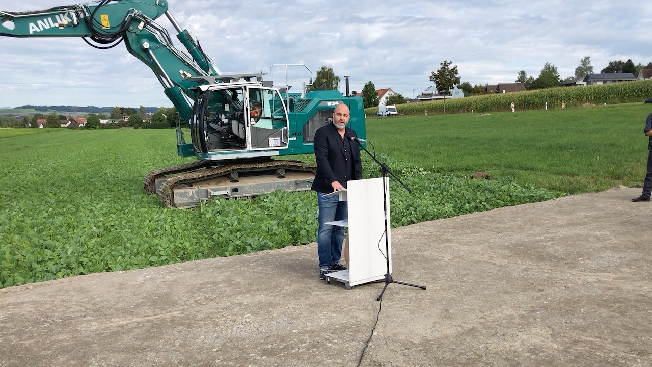 Der Spatenstich zum Autobahnzubringer A4 Obfelden/Ottenbach ist heute Montagmorgen erfolgt. Regierungsrat Martin Neukom selbst machte als Baggerführer den Anfang. Vertreter des Bundes, des Kantons und der Gemeinden waren am Medienanlass mit dabei.