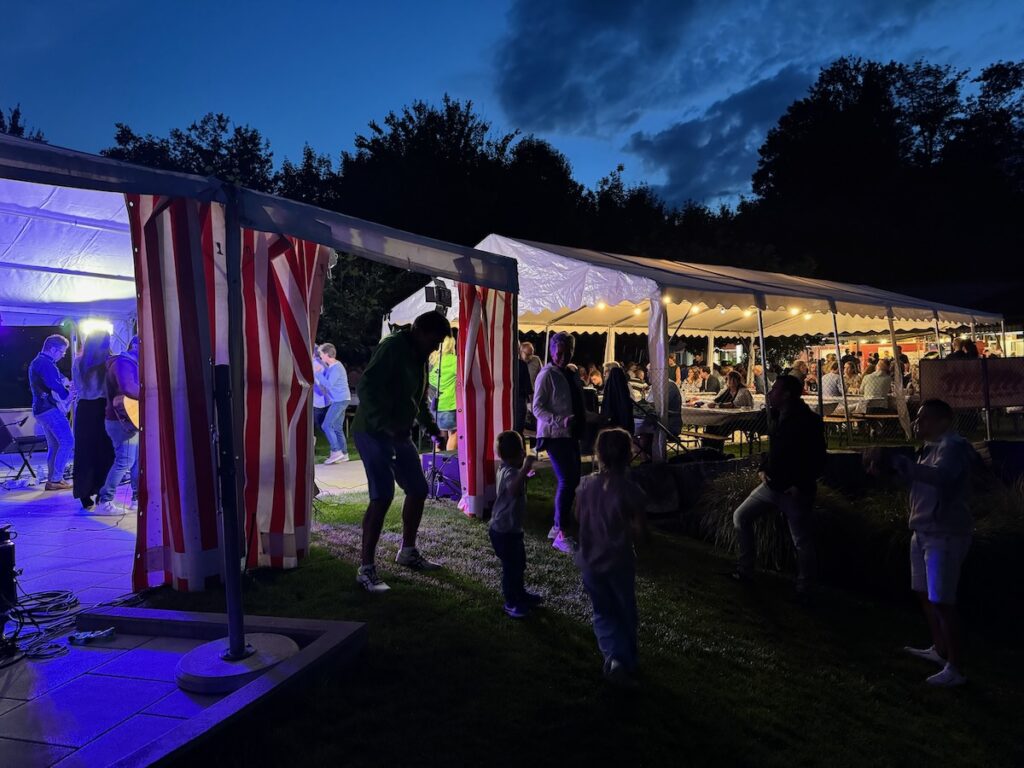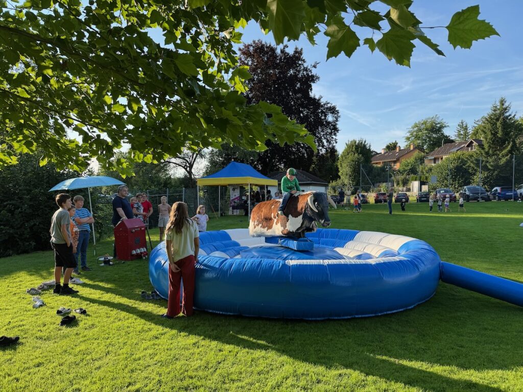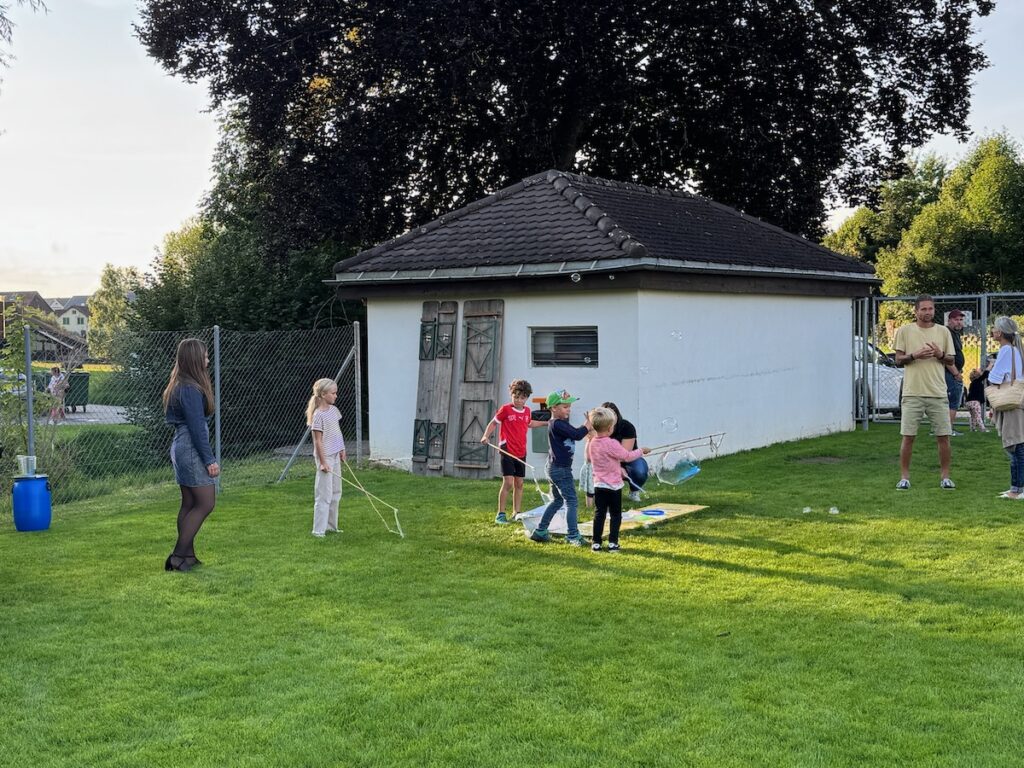 Die Helfenden des Feuerwehrvereins versorgten die Gäste wie immer mit Würsten, Plätzli und Pommes. Dazu kam das Dessertbuffet und Kaffees mit Güx. Die Badi-Beiz ergänzte mit Getränken und alkoholischen Drinks. Auch das eine oder andere Glacé wurde geschleckt. Für die Kinder waren Bull-Riding, Schminken oder auch ein Seifenblasen-Workshop organisiert – aber auch sonst wusste der Nachwuchs sich auf der Spielwiese zu betätigen.