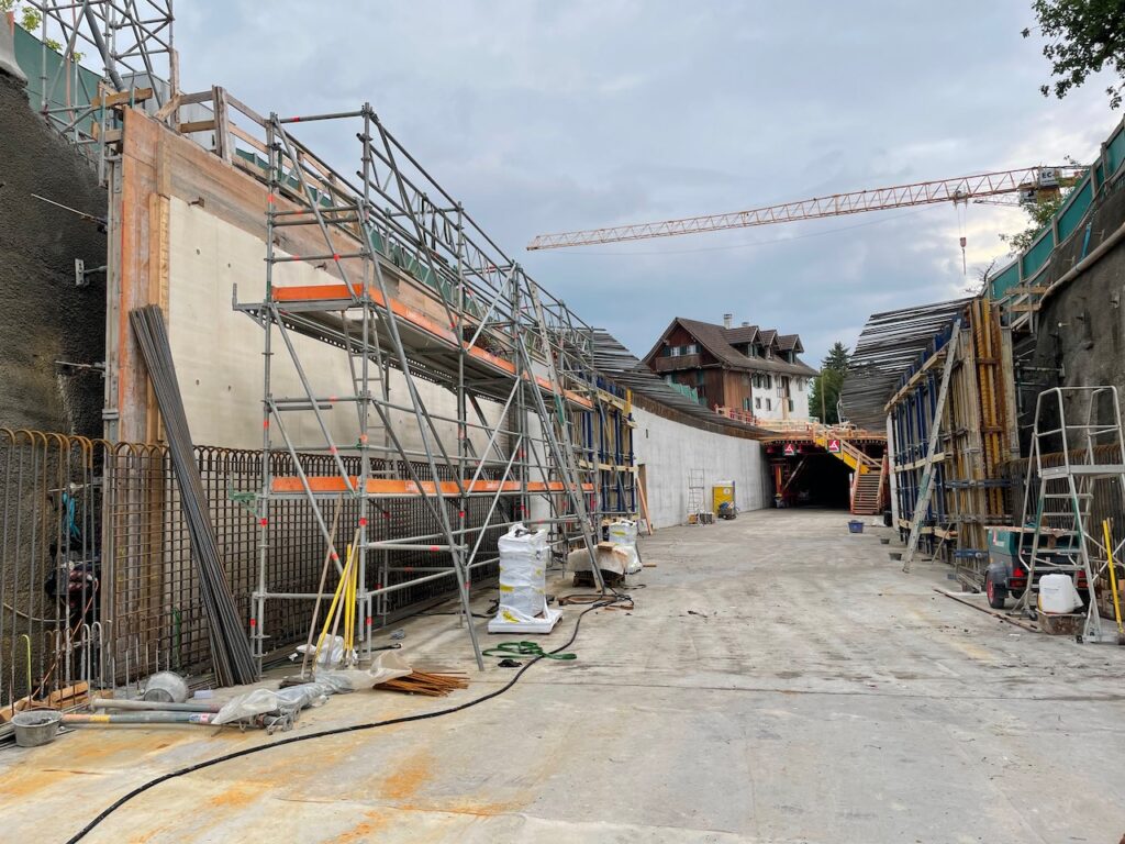 Chefbauleiter Melven Hürlimann erklärte auf der Baustelle, dass es sich hier eben um eine Überdeckung handelt und nicht einen Tunnel. Für diesen fehlen dem Bauwerk 50 Meter. Erst ab 300 Meter spricht man von einem Tunnel.