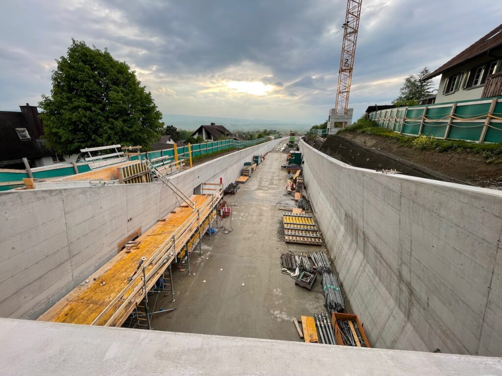 In Bickwil entsteht im Moment das Herzstück des Autobahnzubringers. obfelden.info konnte diese Woche zusammen mit weiteren Medienvertretern einen Einblick in das Bauwerk nehmen. Momentan ist gut ein Drittel der Überdeckung erstellt.