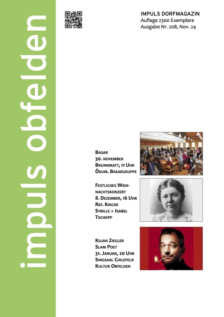 Der Impuls lebt von den Beiträgen der Obfelder Vereine. Diese reichen für jede Ausgabe ihre Berichte und Fotos ein. Ab 2025 werden alle Veranstaltungen, welche bisher auf der Impuls-Website eingetragen wurden, bei obfelden.info erfasst und aufgeschaltet. So entsteht ein umfassender Event-Kalender für die Gemeinde Obfelden. Die Infos dazu folgen später direkt an die Verantwortlichen.