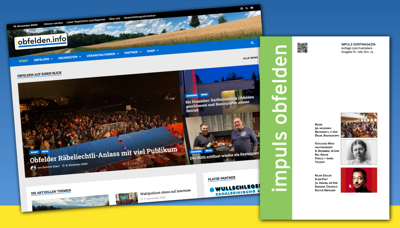 Seit über 50 Jahren erscheint in Obfelden das Dorfmagazin Impuls. In den letzten 16 Jahren fungierte Peter Leemann mit seiner Werbeagentur als Redaktor für das im A5-Format erscheinende Heft. Mit dem Beginn des neuen Jahres übernimmt Dominik Stierli mit seiner Firma stierli digital solutions GmbH die Aufgabe. Das Obfelder Unternehmen betreibt auch die News-Website obfelden.info.