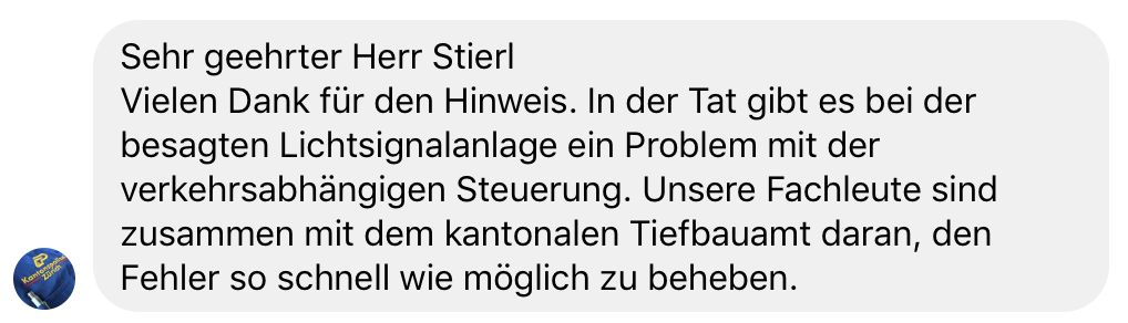 Auch obfelden.info wurde von verschiedener Seite kontaktiert, ob wir das ganze abklären können. Was allerdings gar nicht so einfach war. Der Ende 2016 zuständige Beamte von der verkehrstechnischen Abteilung der Kantonspolizei Zürich gab bloss eine Rückmeldung, er arbeite dort nicht mehr. Eine E-Mail an die allgemeine Adresse der Abteilung kam mit einer Fehlermeldung zurück und eine Anfrage via Kontaktformular blieb bis heute unbeantwortet. Des Weiteren scheint die verkehrstechnische Abteilung auch nicht per Telefon erreichbar.