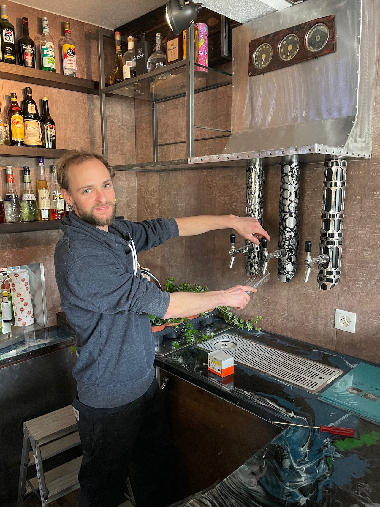 Wenn man sich das ehemalige Restaurant Rütli vor Augen hält, ist aktuell in der neuen Bar fast nichts mehr wie vorher. Einzig Eingang und Theke sind am gleichen Platz, das ganze Interieur ist neu. Beziehungsweise neu ist nicht der richtige Ausdruck. Die drei zukünftigen Betreiber haben bis auf wenige Elemente alles selbst hergestellt und dies vorwiegend aus gebrauchten Materialen, sogenanntes Upcycling.