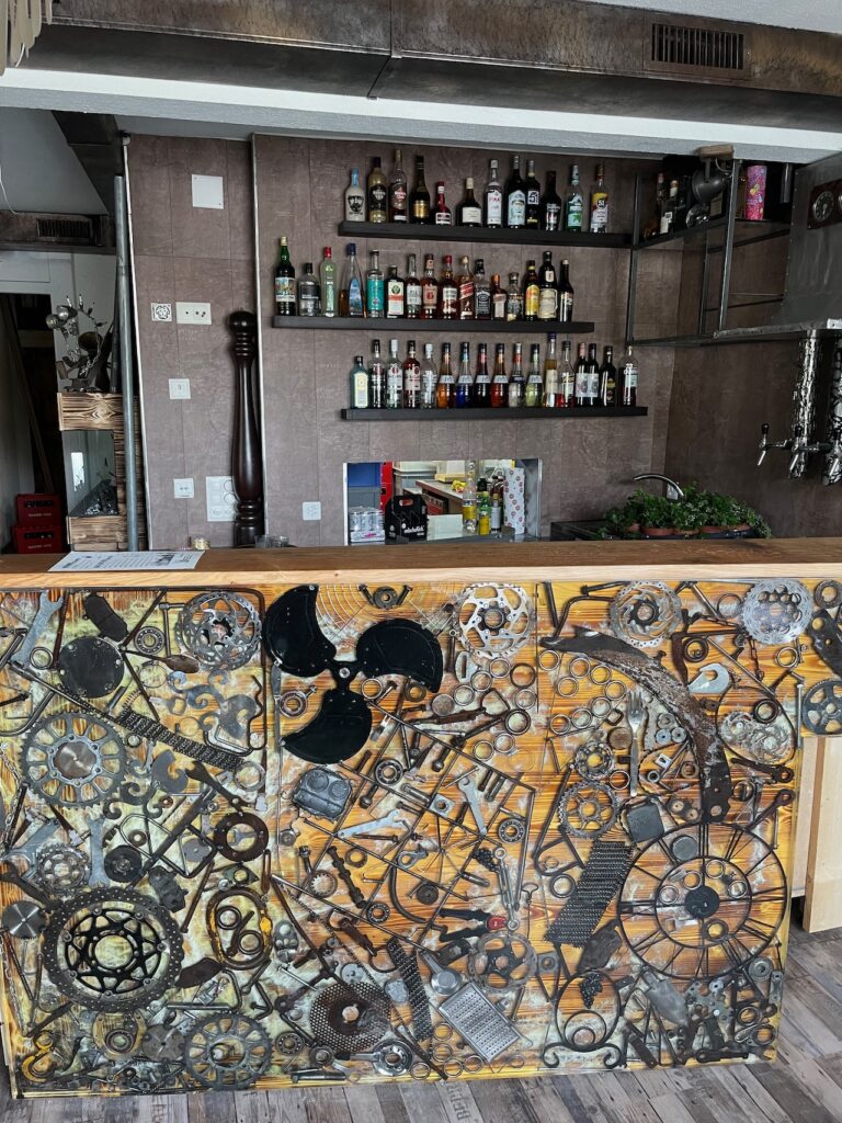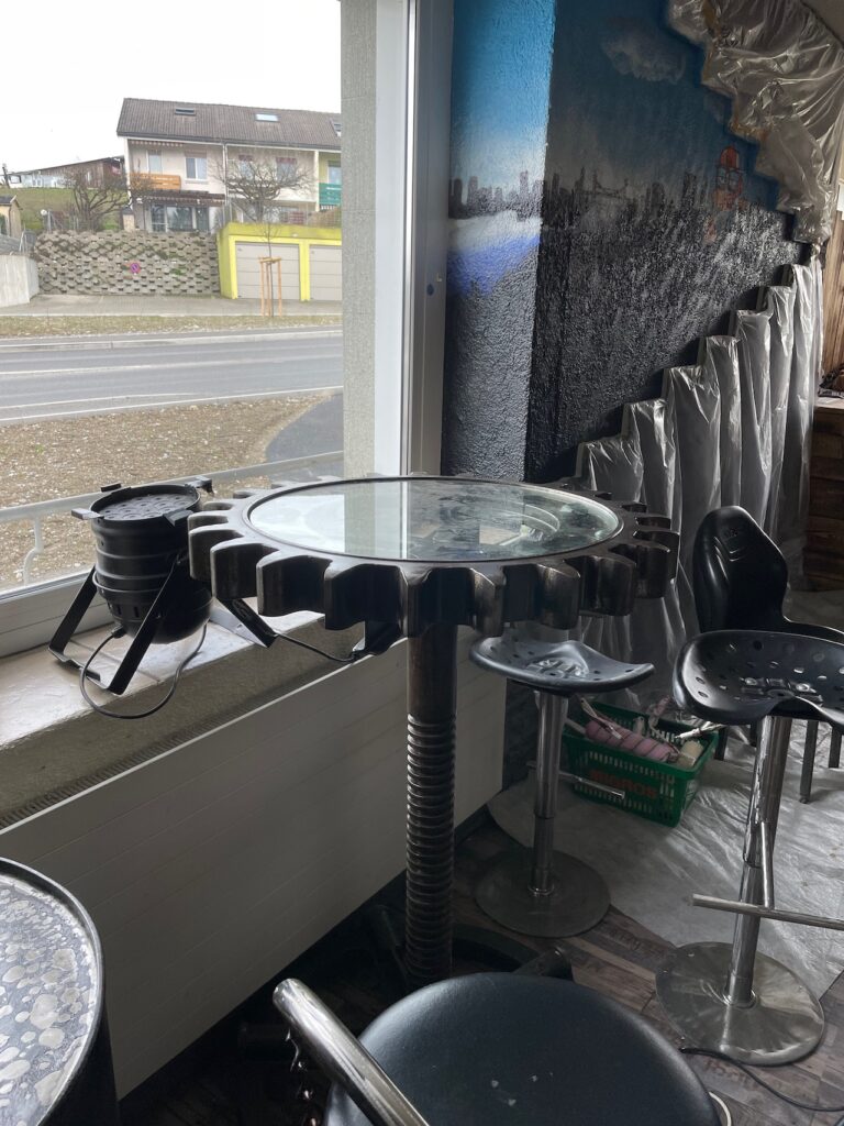 Als Bartisch beim Eingang dient ein altes Zahnrad der Rigi-Bahnen. Alte metallene Gegenstände zieren die Bar-Theke. Eine Wand besteht aus einer Sammlung alter Schilder. Praktisch alles in Bob’s Bar ist handgemacht. Und wie Matthias Huber betont, auch käuflich zu erwerben. Wenn jemanden der Tisch an seinem Sitzplatz gefällt, kann der Tisch gekauft werden.