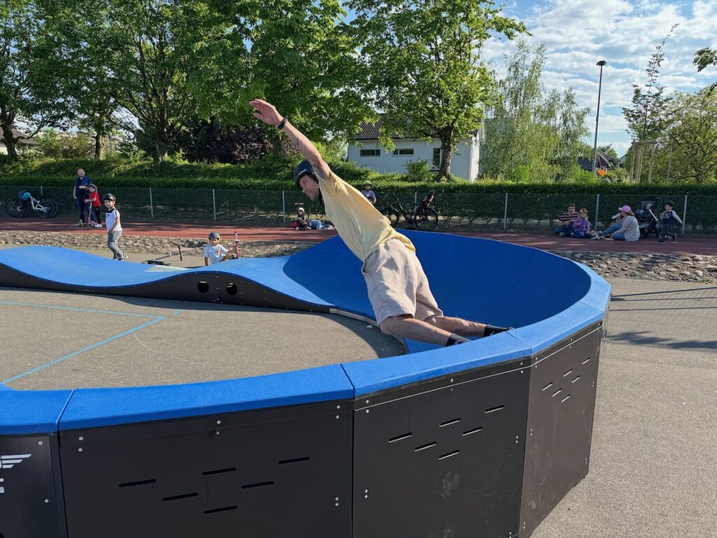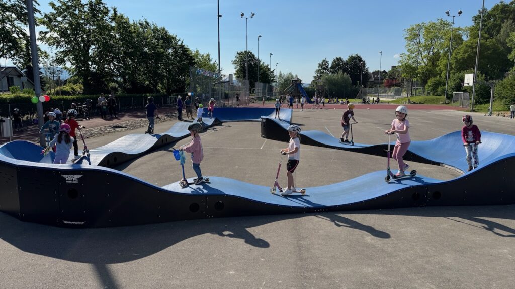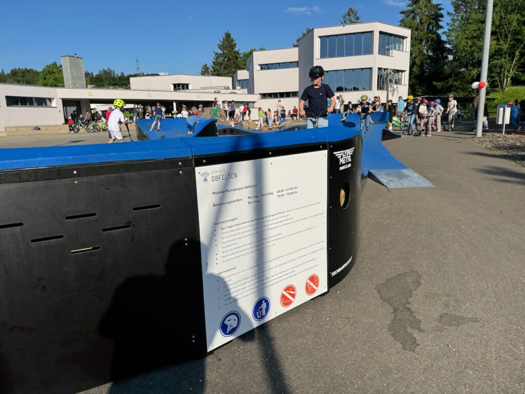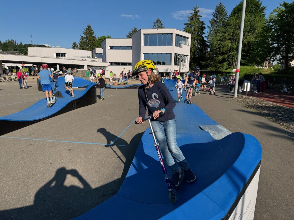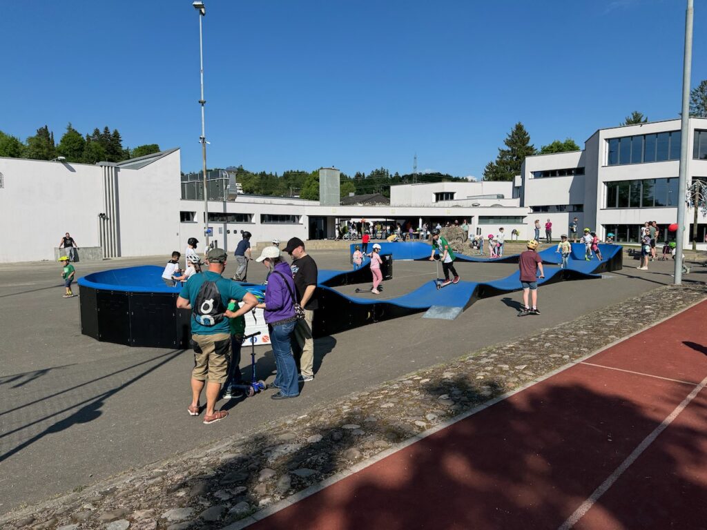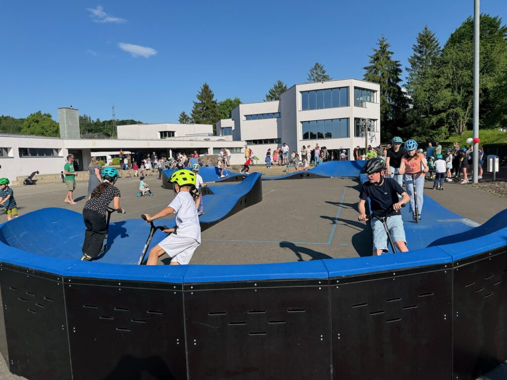 Am Samstagnachmittag, 10. Mai, wurde auf dem Pausenplatz des Schulhaus Schlossächers die neue Pumptrack-Anlage der Gemeinde eingeweiht. Wie die Gemeinde auf ihrer Website schreibt, können Pumptracks nicht nur mit Fahrrädern, sondern insbesondere auch mit einem Kickboard, Skateboard oder Inlineskates befahren werden.