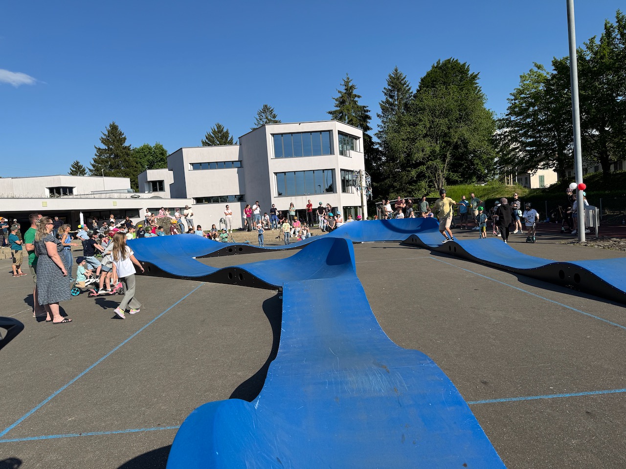 Am Samstagnachmittag, 10. Mai, wurde auf dem Pausenplatz des Schulhaus Schlossächers die neue Pumptrack-Anlage der Gemeinde eingeweiht. Wie die Gemeinde auf ihrer Website schreibt, können Pumptracks nicht nur mit Fahrrädern, sondern insbesondere auch mit einem Kickboard, Skateboard oder Inlineskates befahren werden.