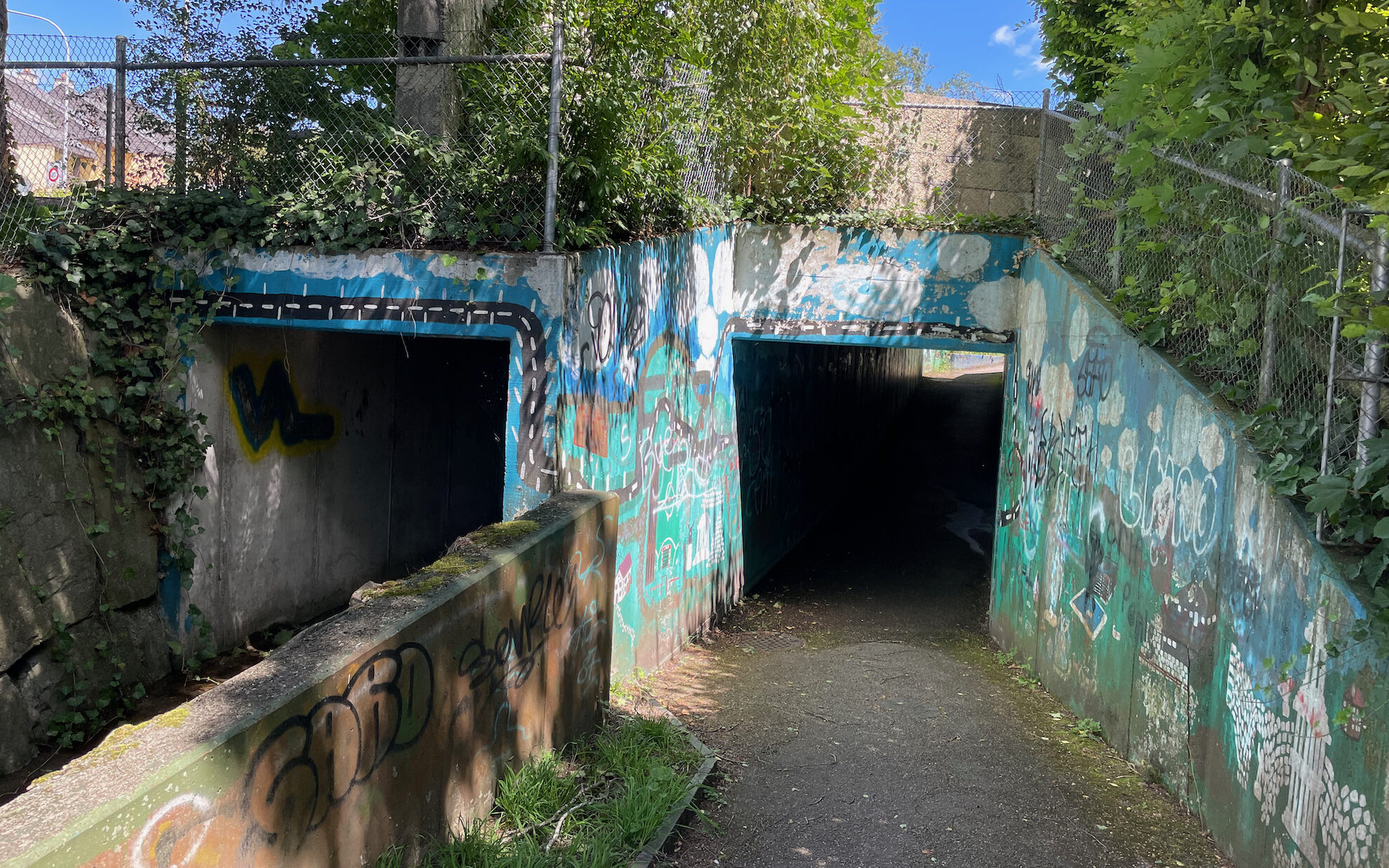 Die Personenunterführung beim Schulhaus Schlossächer wird ab April 2024 infolge der Sanierungsarbeiten an der Ottenbacherstrasse verschwinden und der Fussweg nun mit einer Verkehrsinsel über die Strasse geführt. Der Bachdurchlass wird erneuert.