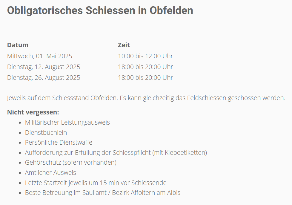 Obligatorisches Schiessen für alle Armeeangehörigen