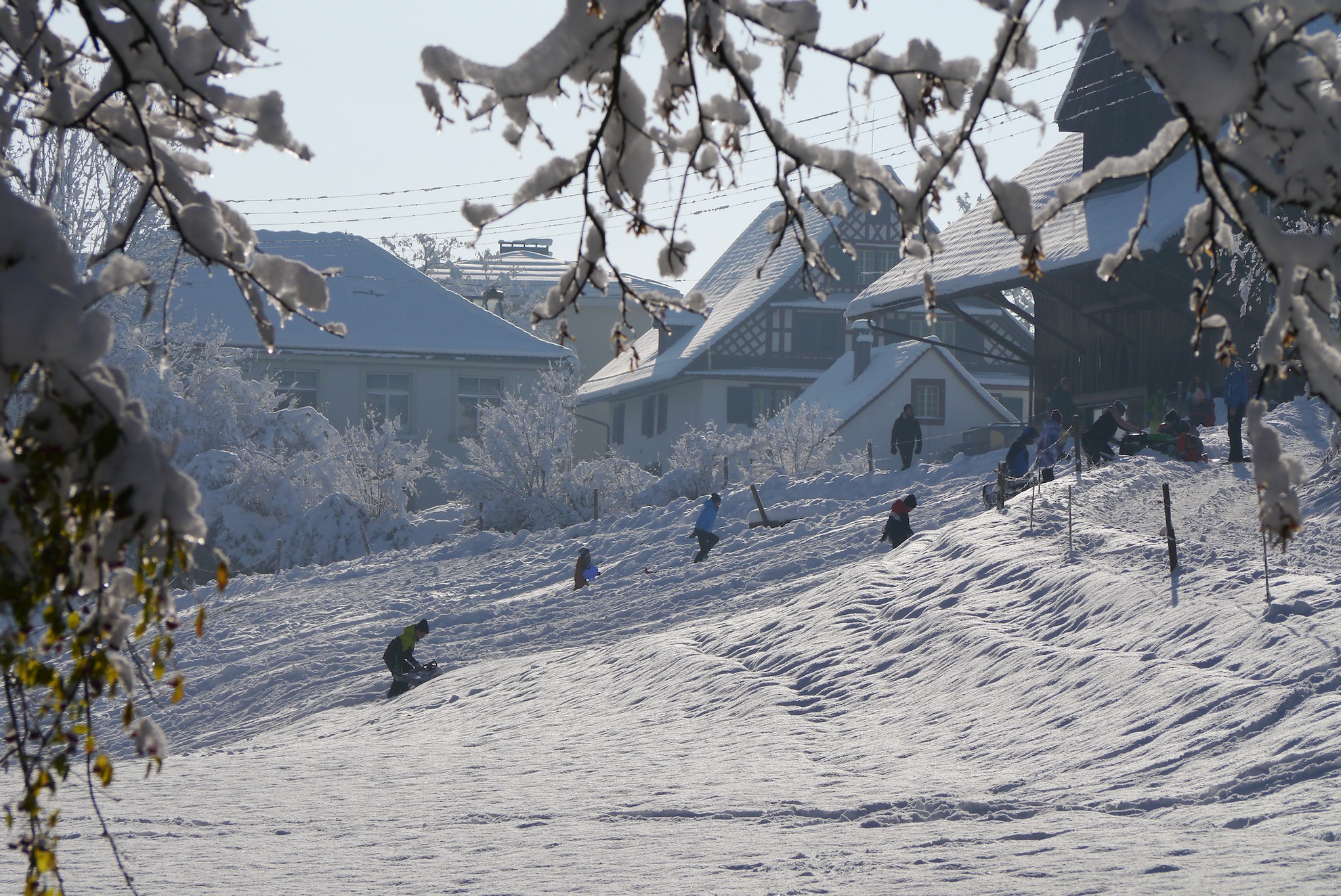 Zum 1. Dezember kam am Freitag der grosse Schnee. Noch weit in den Samstag hinein schneite es in Obfelden. Zum 1. Advent zeigt sich unser Dorf jetzt bei schönstem Winterwetter. An zahlreichen Hotspots wie zum Beispiel bei der Tellen oder dem Sportplatz Zendenfrei waren die Kinder und auch Erwachsenen am Schlitteln.