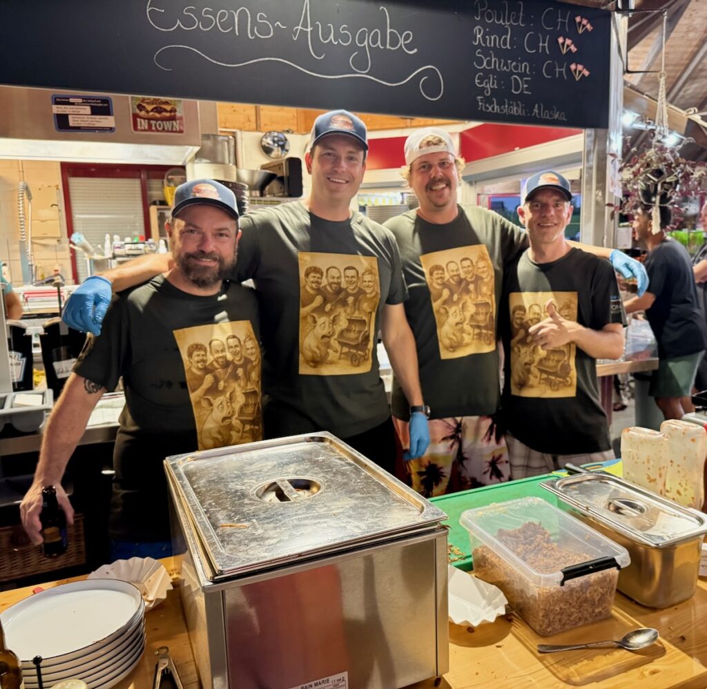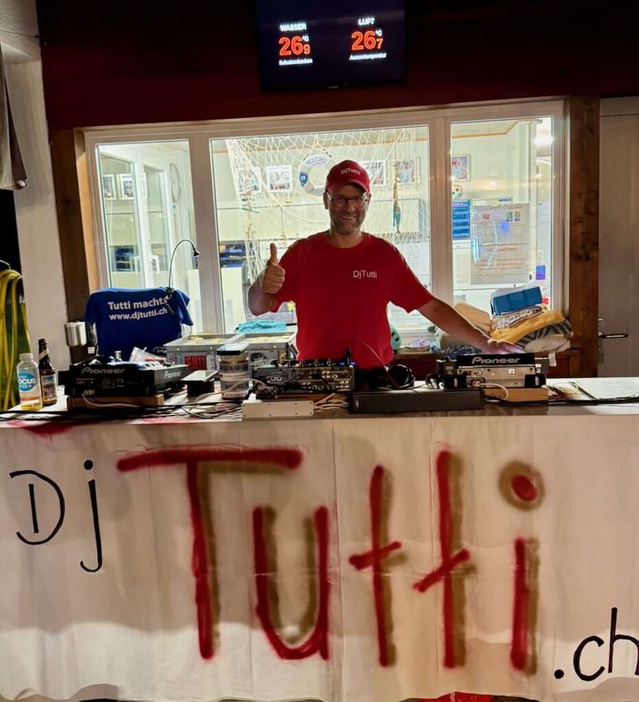 Die Pulled Pork „Jungs“ Michi, Mace, Thomas und Dani hatten mit ihren feinen Burgern ihren dritten Auftritt in der Badi. An die Zahlen vom letzten Jahren kamen Sie nicht ganz ran, aber über 130 Burger wurden an diesem Abend verspeist. Für gute Stimmung sorgte DJ Tutti, welcher ab und an auch von den vielen Kindern mit Musikwünschen bestürmt wurde.