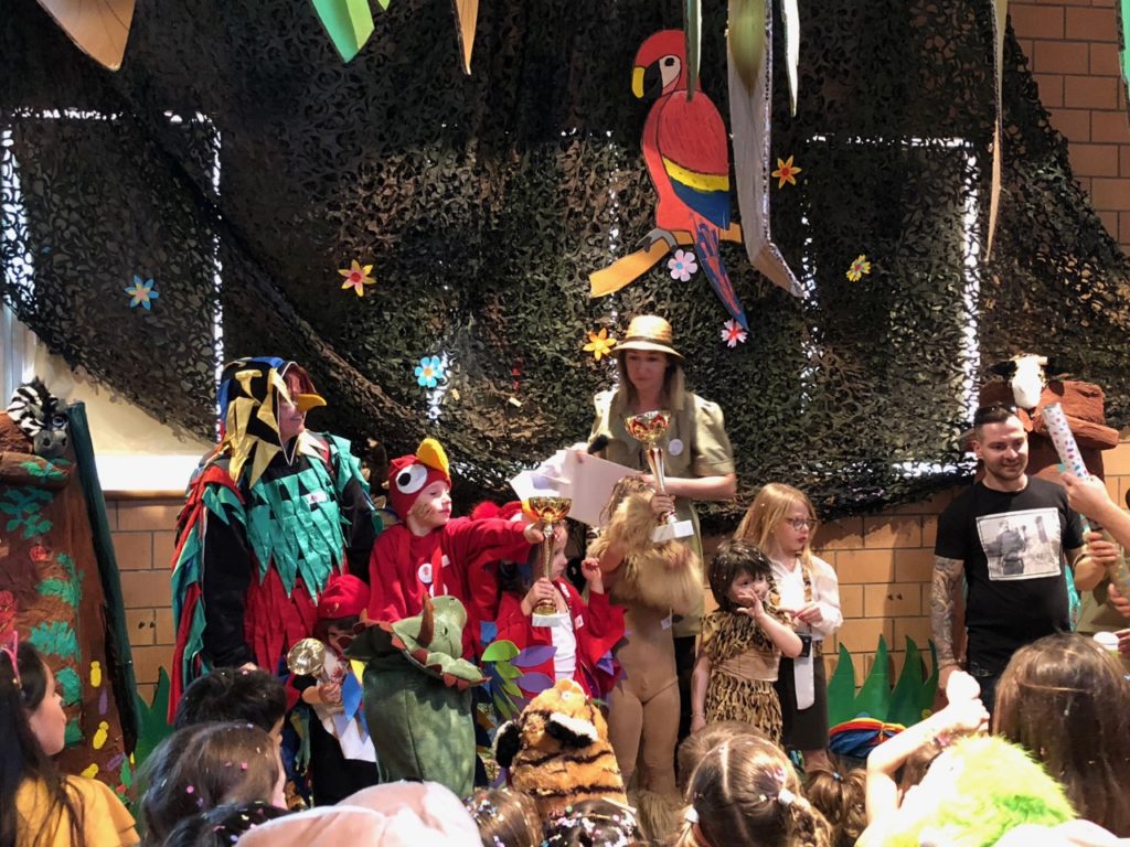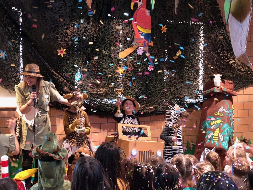 Am Ende wurden die besten Einzel- und Gruppenmasken mit einem Pokal ausgezeichnet und mit einem Konfetti-Regen gefeiert.