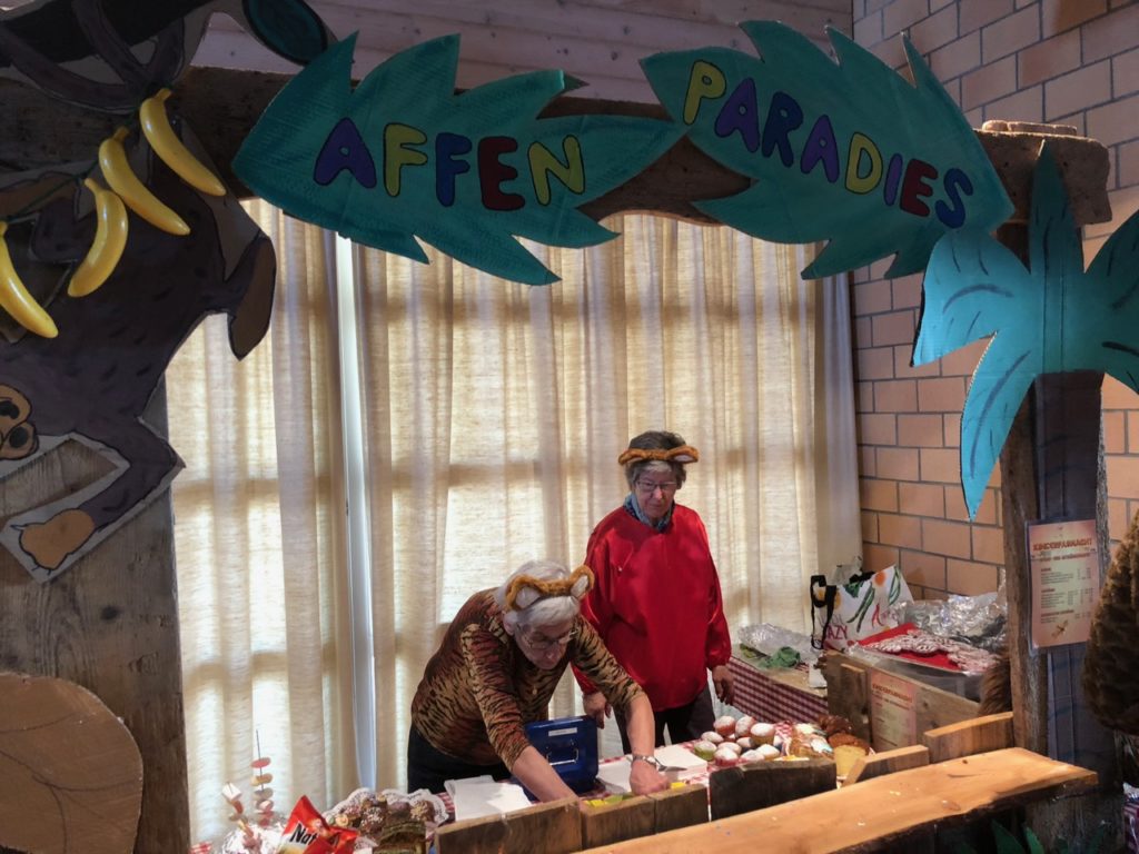 Auch die Speisekarte wurde motto-gerecht angepasst: Einen Rüssel im Teig, knackige Palmenblätter oder getrocknete Liane waren erhältlich. Und nicht nur Hot-Dogs, Pommes Chips oder Süssigkeiten-Spiessli. Auch ein grosses Kuchen-Buffet stand bereit.