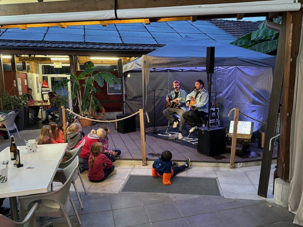 Ganz so lange wie an einem warmen Sommerabend blieben die Gäste nicht sitzen, trotzdem war es ziemlich voll. Den grössten Spass hatten am Samstagabend die vielen Kinder. Diese konnten sich auf der grossen Wiese und dem Spielplatz vertun, solange sogar bis die Anlage nur noch vom Mondlicht erhellt wurde.