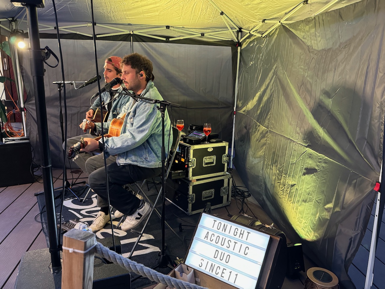 Am Samstagabend kurz vor 20 Uhr begannen die beiden Südtiroler Musiker Claus Stecher und Philipp Trojer ihr Konzert. Die Band Since11 spielte angenehme Pop-Klassiker wie zum Beispiel Hotel California von den Eagles oder auch moderneres von den Foo Fighters, steuerten aber auch ein paar hörenswerte eigene Songs bei.