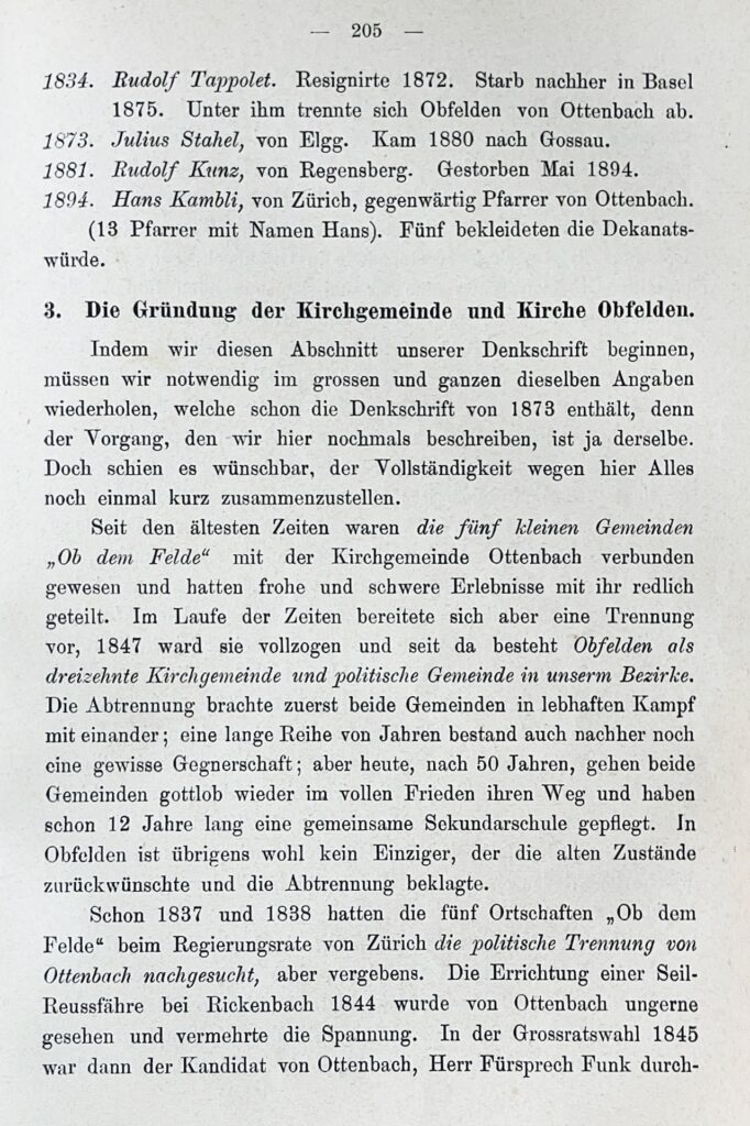 Zürich hatte in dieser Zeit Interesse daran, im Grenzgebiet zu den katholischen Gebieten keine Unruhe zu haben. Die Stadt wollte sicherstellen, dass Obfelden und Ottenbach loyal waren zu den reformierten Kreisen. Und so wurde dem Wunsch nach längerer Diskussion stattgegeben. Mehr dazu lässt sich auch in der Festschrift von 1897 zum 50-jährigen Bestehen der Gemeinde nachlesen.