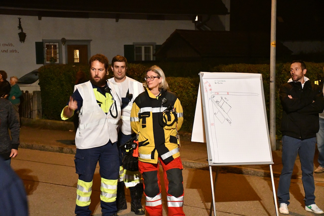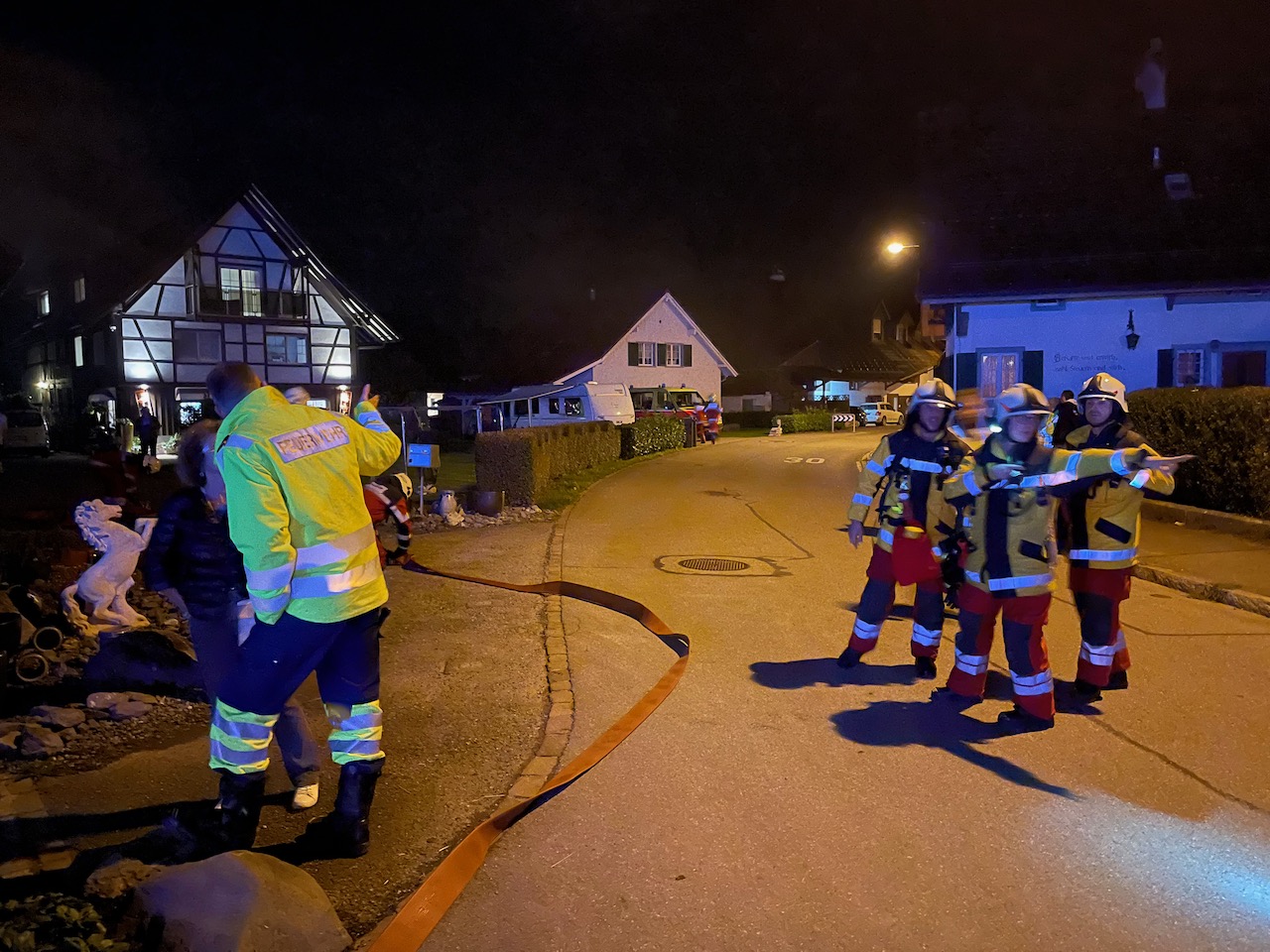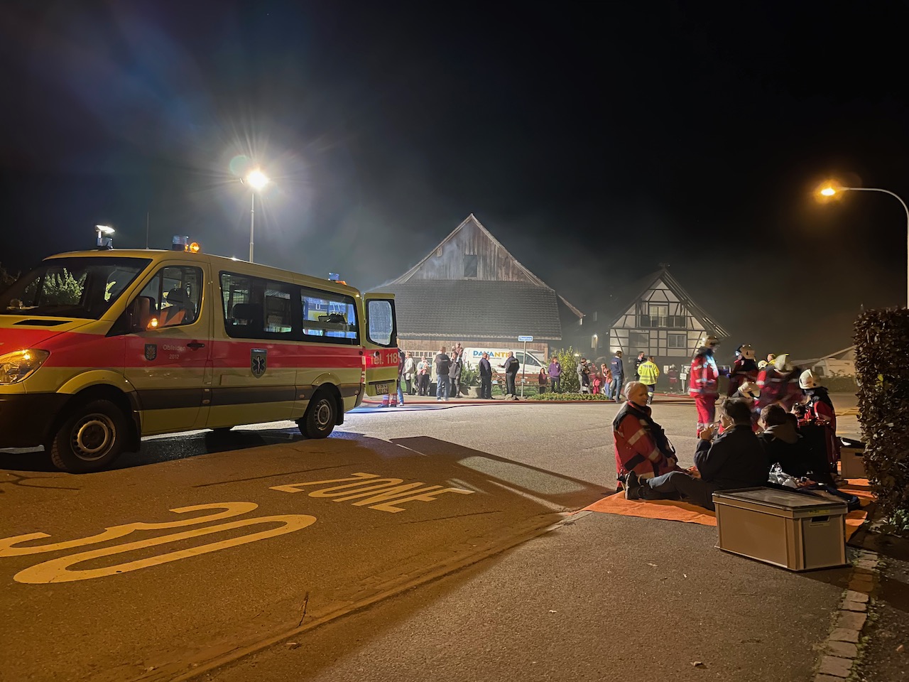 Die Szenerie mit Blaulicht und viel Rauch wirkte schon ziemlich echt, was auch einige Schaulustige anlockte. Nach gut einer Stunde war Schluss. Schliesslich folgte auch noch ein gemütlicher Teil mit Speis und Trank, als Dank für die gute Arbeit der Feuerwehr.