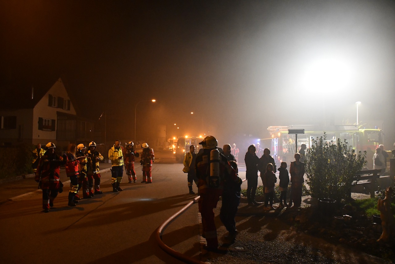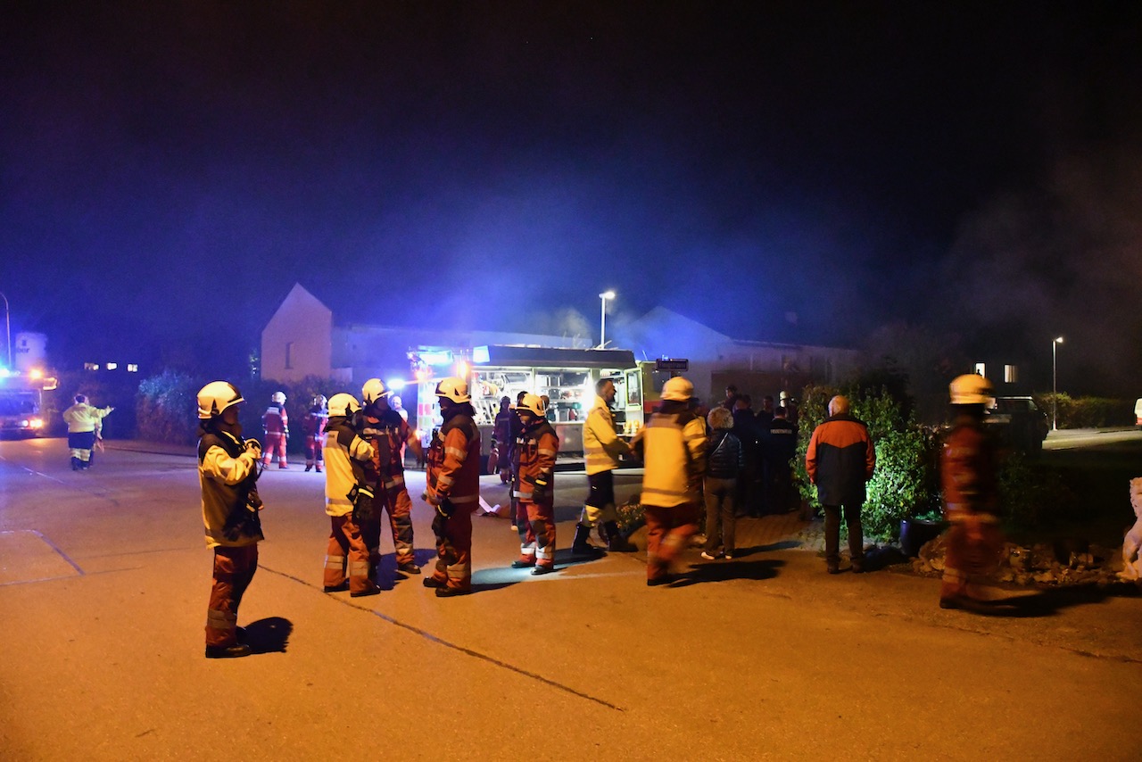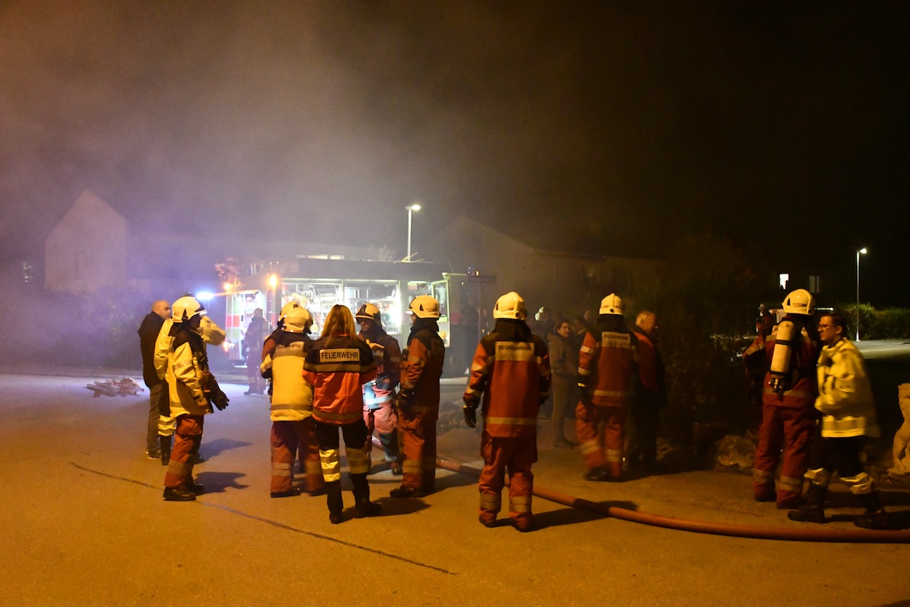 Die Szenerie mit Blaulicht und viel Rauch wirkte schon ziemlich echt, was auch einige Schaulustige anlockte. Nach gut einer Stunde war Schluss. Schliesslich folgte auch noch ein gemütlicher Teil mit Speis und Trank, als Dank für die gute Arbeit der Feuerwehr.