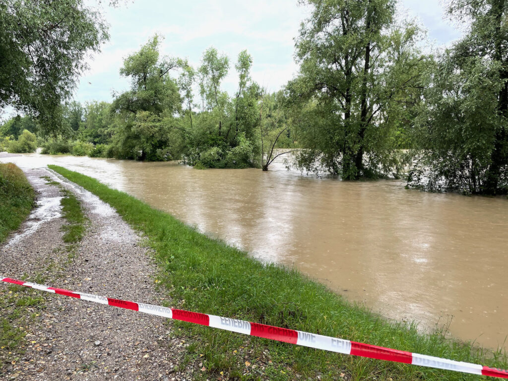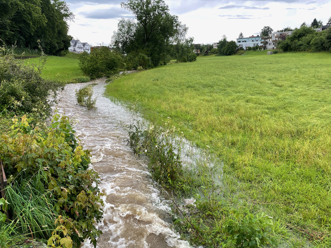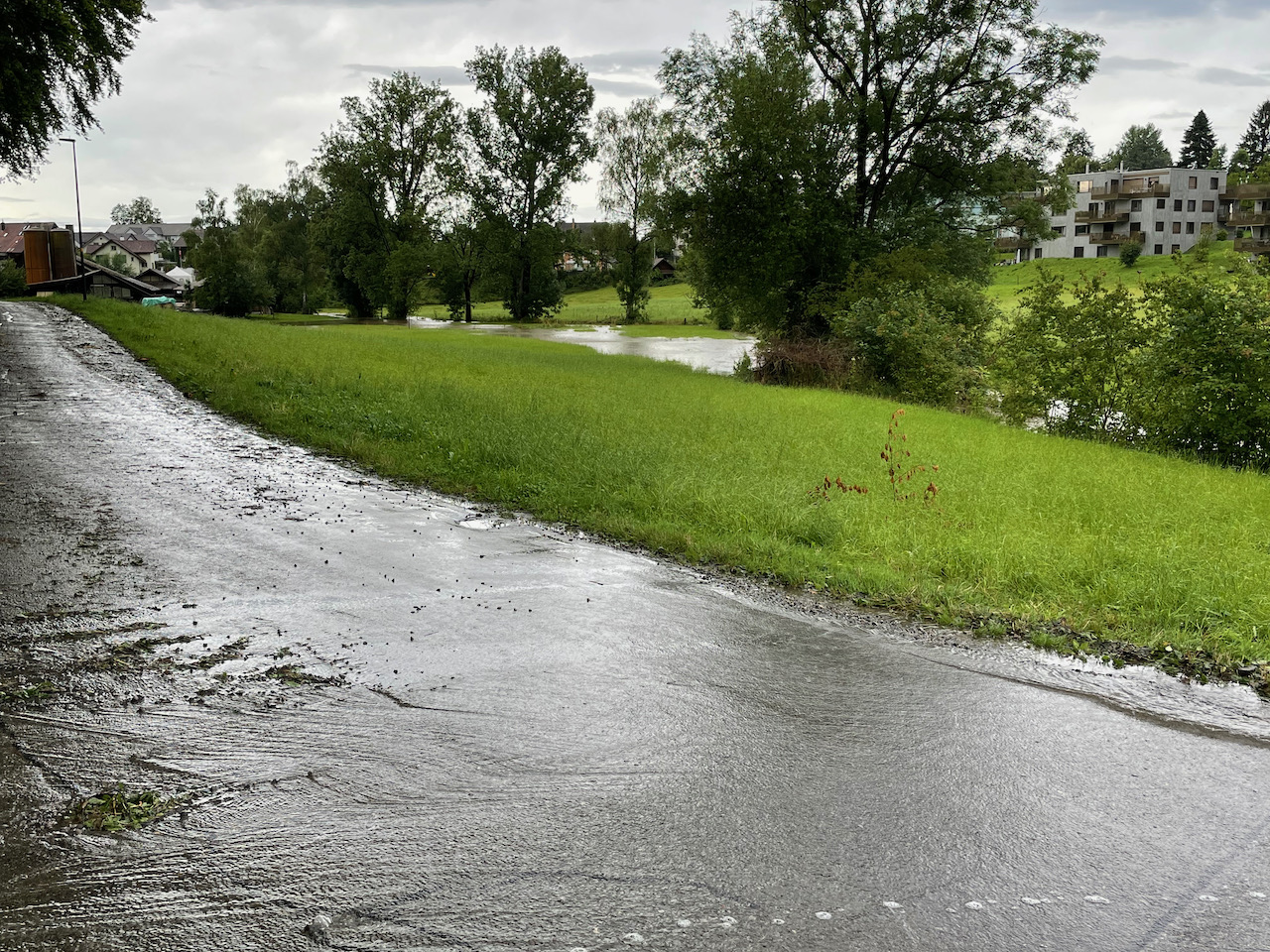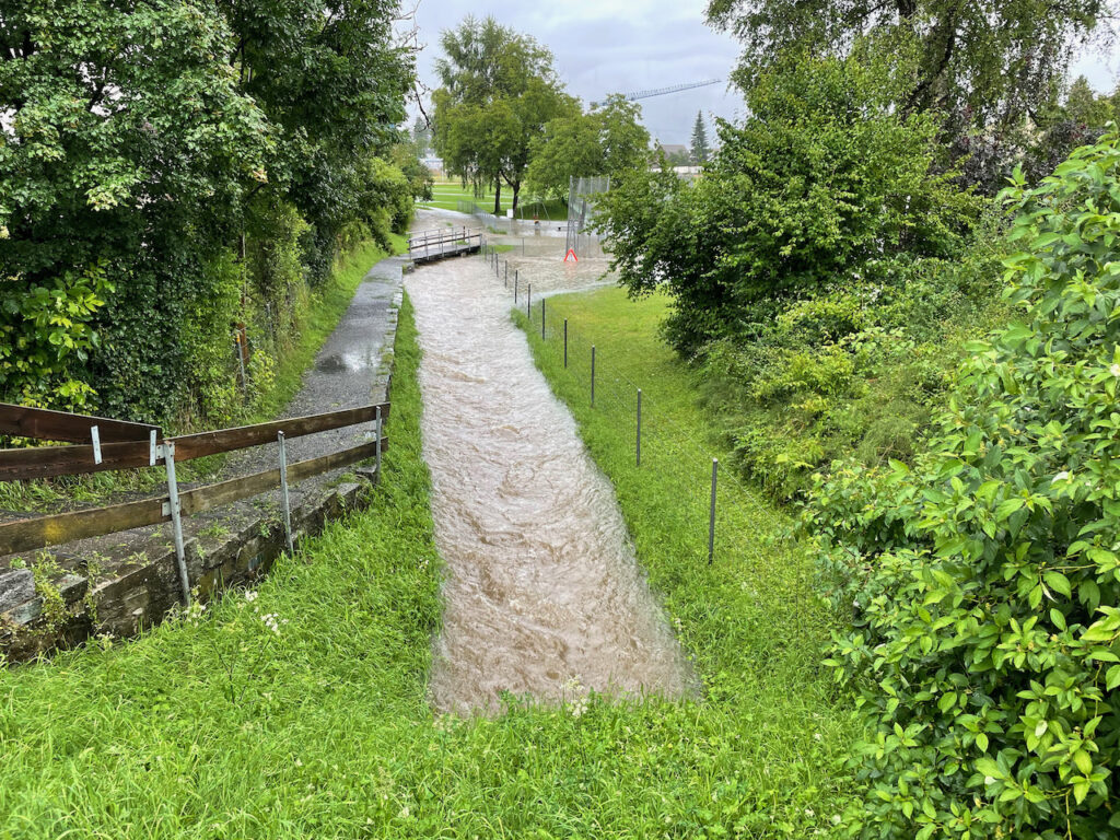 Nach heftigen Gewittern in der Nacht und ergiebigen Niederschlägen treten auch in Obfelden verschiedene Bäche über die Ufer. Der Pegel der Reuss ist seit dem Morgen am Steigen. Die Feuerwehr Obfelden war den ganzen Tag über im Einsatz.