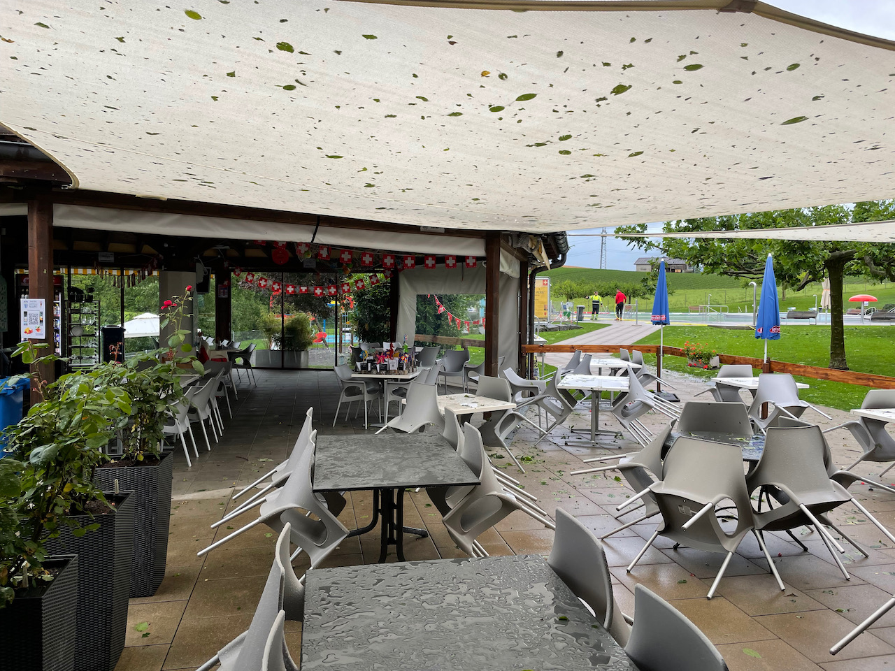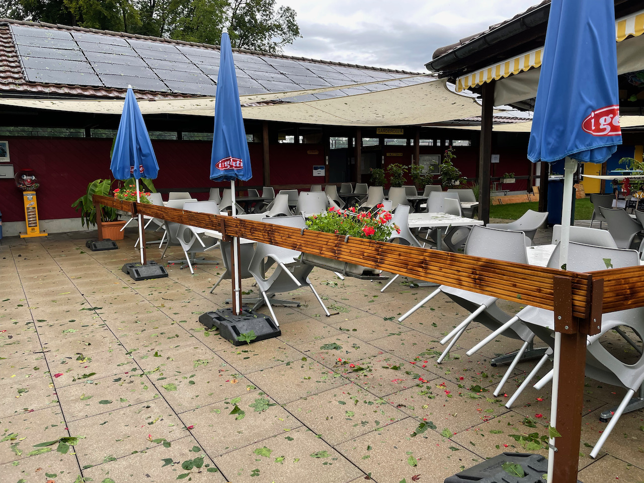 Viele Orte sind mit Blättern und Ästen übersäht. In der Badi Obfelden sind die ganzen Liegeflächen und die Schwimmbecken mit Blättern verunstaltet. Glücklicherweise blieben aber alle Bäume stehen. Bademeister Paul Höhener rechnet mit gut 1-2 Tagen Aufwand, um die Badi Obfelden von alldem zu befreien.